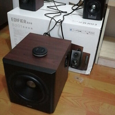 2017年6月购入漫步者S201至今已一年多时间,经过长期使用后仍然觉得物有所值,这款2.1音响虽然不能与专业音响比,但由于配置了精密电子分频,在使用“光纤”输入音乐信号时,播放FLAC和WAV格式的无损音乐,感觉到中、高音解析度很清晰,8寸低音下潜到位富有弹性,在观看大片时声音也非常震撼,非常不错的一套2.1有源音箱。