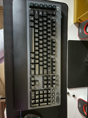 可进行无线/蓝牙快速切换,罗技软件及G键只能在无线模式下生效(蓝牙模式下G键是默认的F1~F6),可以锁定win键和菜单键,没有num lock灯所以需要自行判断……键轴用的是罗技的Romer-G轴,和茶轴手感相近,较软,键程较短,声音不大,玩游戏或者放办公室都可以(没有背光所以装不了b,同样也无法适配游戏灯光)。老实讲像我这种偏爱青轴和黑轴的人不太习惯,而且G613的轴感不太适合游戏,更偏向coding或其它办公,还有G键比较碍手,很容易按错……