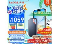 SanDisk 至尊极速系列 E60 USB3.1 移动固态硬盘 Type-C 2TB 黑色,京东售价 1059 元,现在可领取 30 元优惠券,晒单再返 50 元 E 卡,最终到手价...[详细]