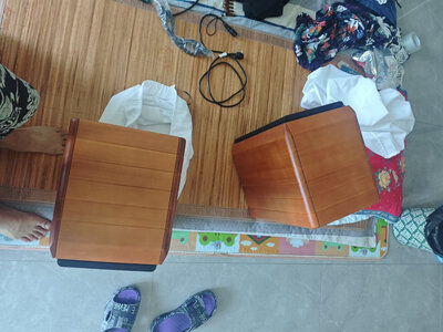音箱确实很重,我当时也是比较了各款惠威在评价里听的几首歌比较确定下来这个声音觉得相对比较喜欢。感觉听有几个类别的确实蛮好听的,比如说啊,钢琴人声等。其他的感觉收音机一般