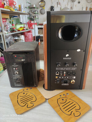 本来考虑买无源和功放组合,但是网购的变数太大,退换很不方便,而且对音响一知半解的,直接买对有源。以前了解过惠威,对音质要求不是特别高的人,这种价位的惠威音箱直接闭眼入没问题。惠威的这对m5a重量接近50公斤,用料扎实 音质自不必说,体积较大,买之前要考虑摆放的位置是否合适。音箱接口很丰富,外观大方漂亮。送的桌面脚架也非常漂亮,完美搭配。