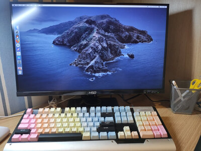 右下边有一暗点,不影响。出厂默认色温非标准模式,暖色,偏橘。改回标准色温就很正了。无论是windows还是macOS显示效果都非常惊艳。是组成黑苹果一体机最佳选择,主机可以直接挂到显示器背后,完全不占地方。