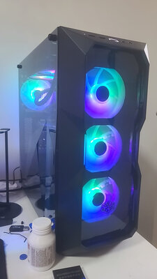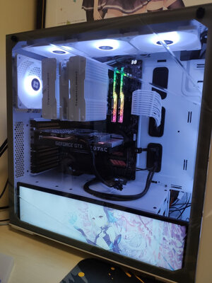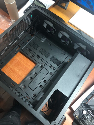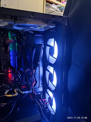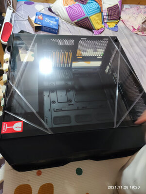 装机结束也一个礼拜了,简单评价下这款机箱,优点显而易见。送了三把ARGB风扇,颜值比较高而且价格便宜,同级别中塔机箱基本都要比这个贵,但是槽点也特别多,第一就是这个机箱的开孔简直反人类,如果你是水冷,尤其是360水冷我是不建议用这个机箱的,看似中塔实际空间很小,我是双塔风冷也没少打架首先第一,主板电源线开孔是#偏的,你知道这对一个强迫症来说有多致命第二,如果你把机箱上部的三把风扇挂满,那你装CPU供电的时候一定会生不如死,我装了一个小时才捅进去,机箱开孔极其不合理,走线非常困难。如果你是新手,我建议换机箱或者选用240水冷或者单塔风冷如果我装机还有下次,我绝对会买全塔机箱,再也不摊便宜买中塔的了,最后给大家看下成品展示,你们看看这个主板供电开孔有多么不合理忘记说了,机箱下部开口也是一塌糊涂,简而言之不建议新手选用