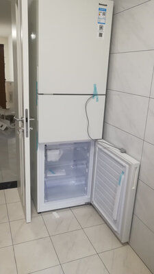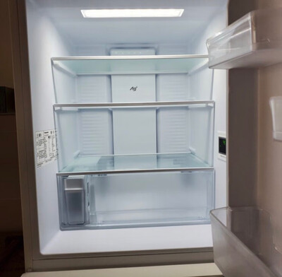冰箱的这个颜色非常好看,冰箱门表面是哑光的,摸起来也不会有指纹,内部空间也不小!足够一家三口用了,新冰箱需要静置12个小时才能通电,暂时还不知道噪音大小!但总体来说还是非常满意!