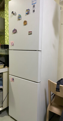 冰箱外观设计挺简单明了,没有花里胡哨更经典。容量在这个尺寸里算很大了,可以屯不少冻品。就是比较高,个子不高的最上层冷藏不容易够到。冷藏效果不错,中间那层可以调温,补充冷冻不够用的时候,很好!