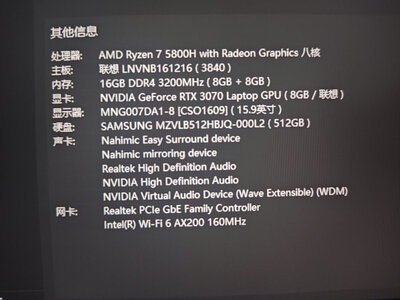 看了好久,终于还是下手了,哈哈哈,到手觉非常值得,首先说一说外形,金属外壳,于感急佳,第二就是画面,画面清晰,分辨率高,清晰明目,第三就是配置,RTX3060搭配AMD的处理器,512G的固态,16g的内存,非常完美了,这个配置可以满足99%的人群了,运行速度,和游戏效果暂时还没测,不过我估计也是非常棒!这个价格很值得出手了!