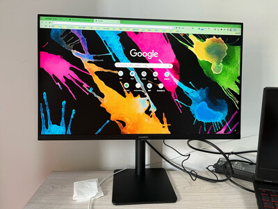 华为MATEVIEW SE这款显示器性价比很高,选了旋转的型号,安装很方便,Dell的同价位的显示器比这价格高一点,虽然没有2K的显示颗粒度,但对于外接显示或投屏,需求足够满足,搭配苹果Mac Pro 氛围感十足,显示很鲜艳。
