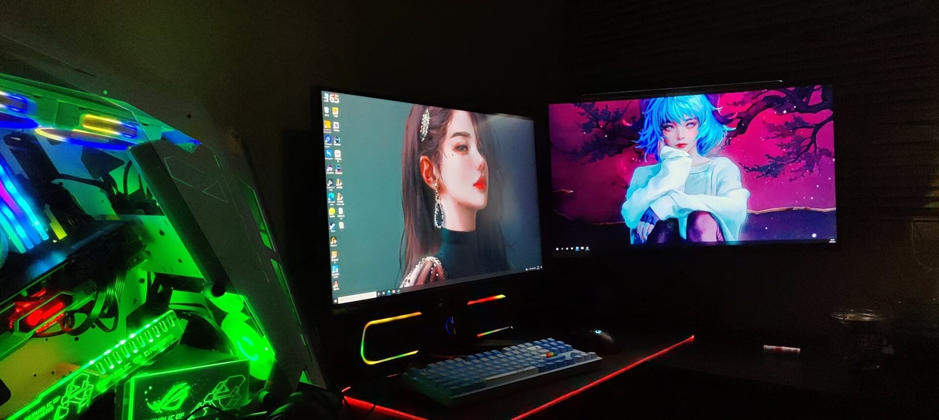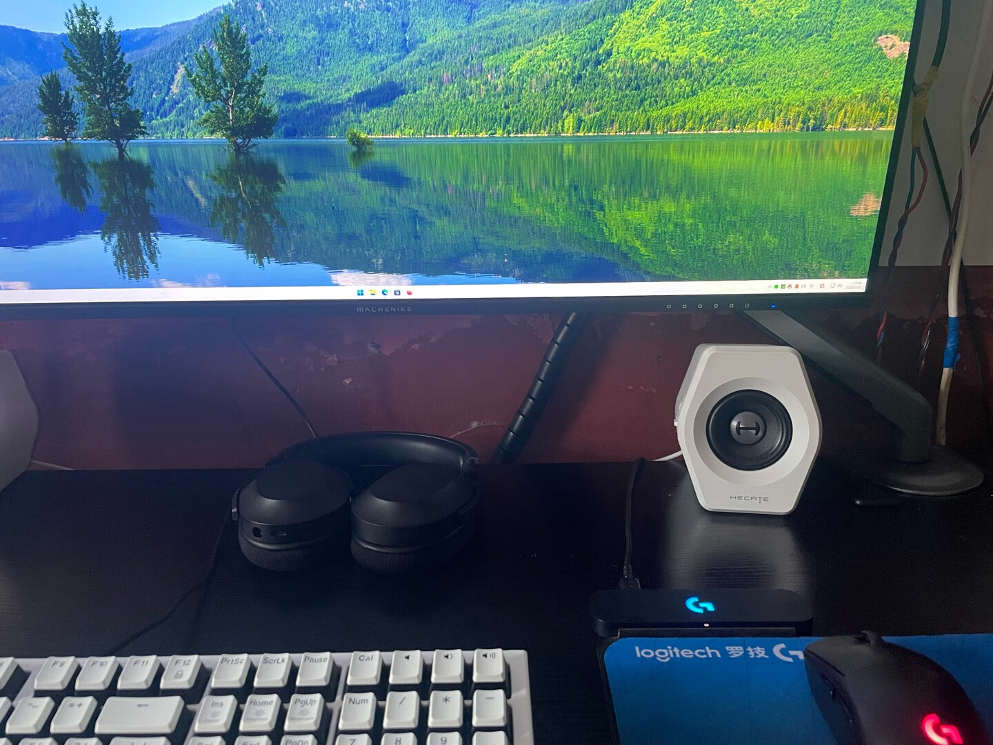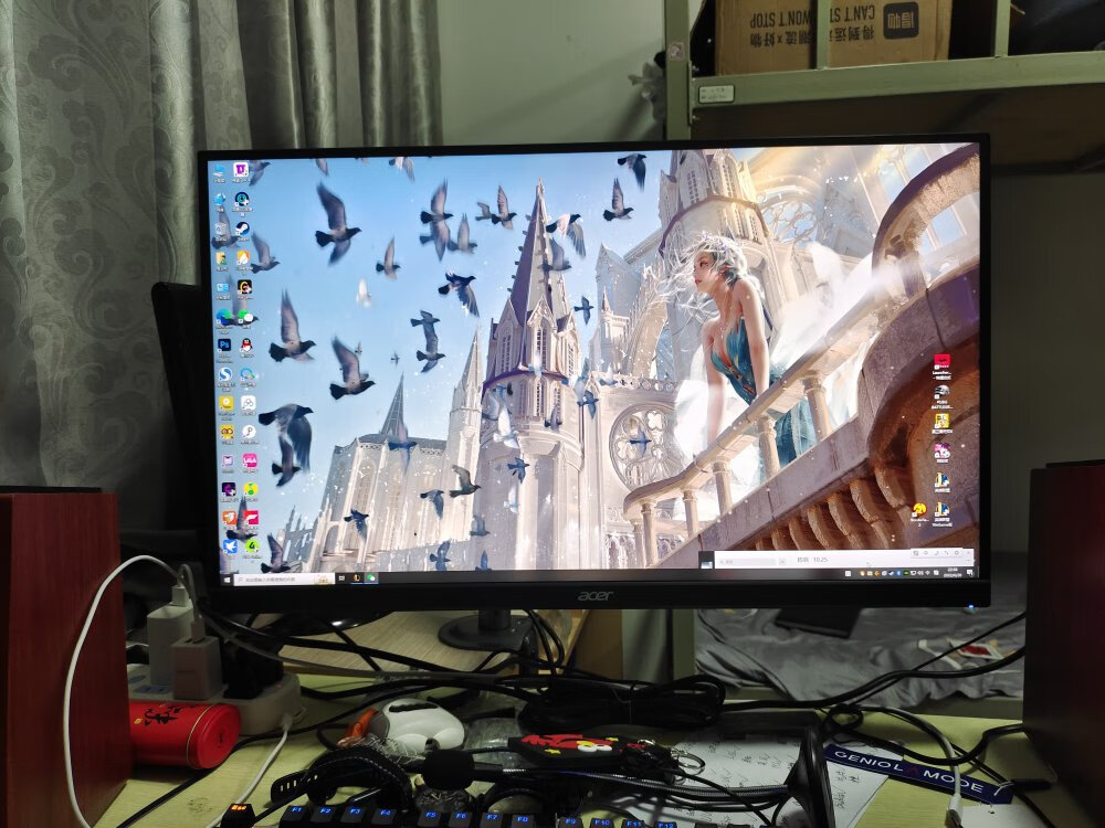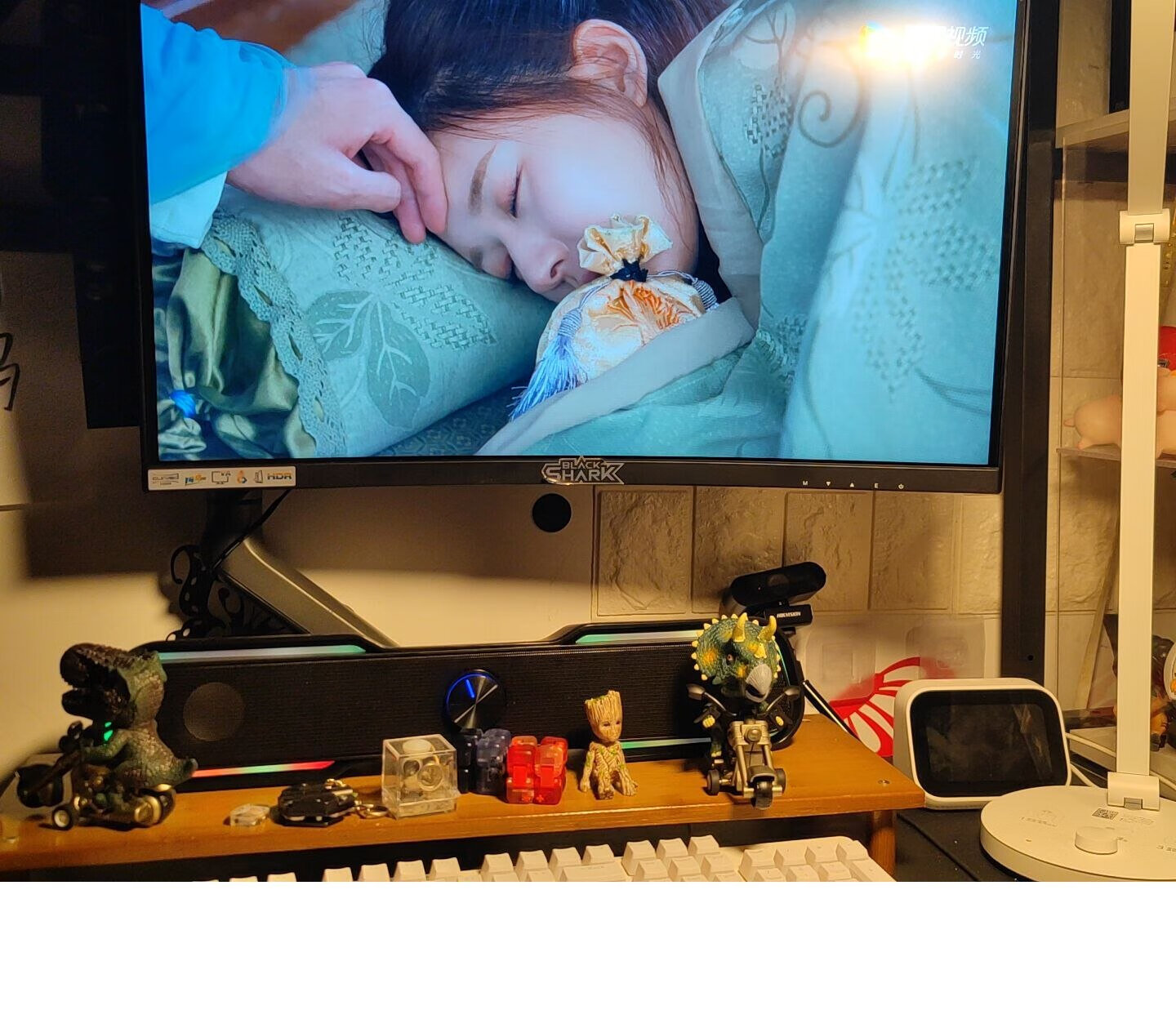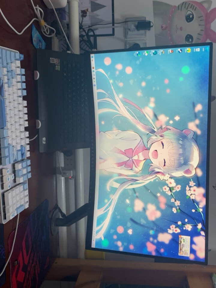 显示器自带的支架虽好,毕竟还是要占用一部分桌面空间,就不如用这种支架臂更自由,更省空间,可调范围更广泛,角度更多样,必要的话也能站起来办公,玩法很多。北弧的单臂和双臂显示器支架以及升降桌我都在用,做工和质量都不错,而这次用到的则是一款RGB支架,自带RGB灯光,更适合电竞房的氛围。