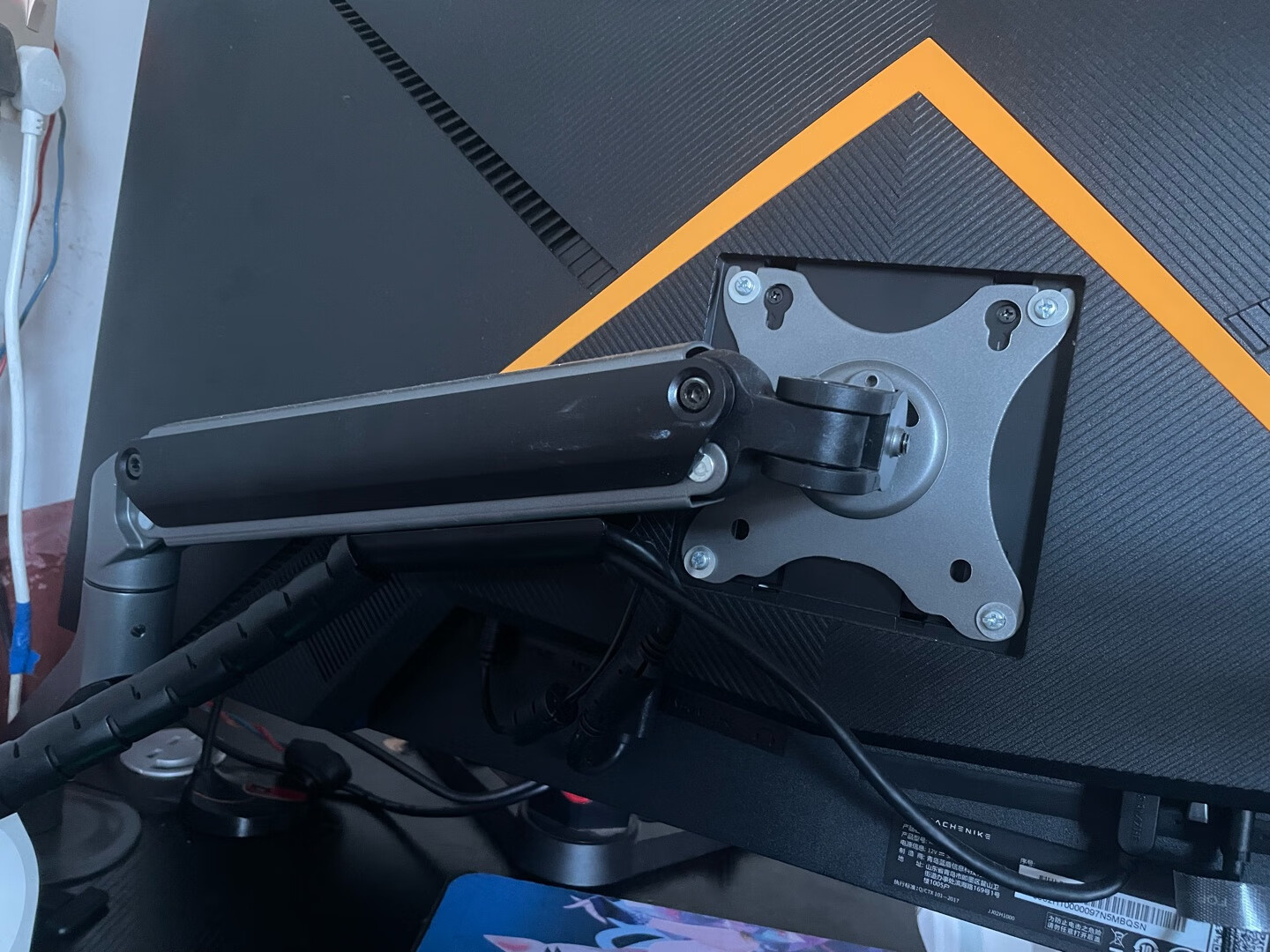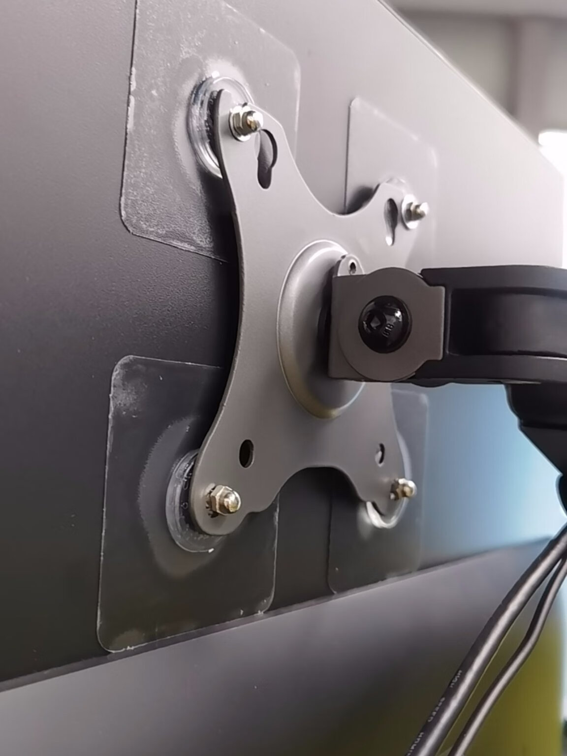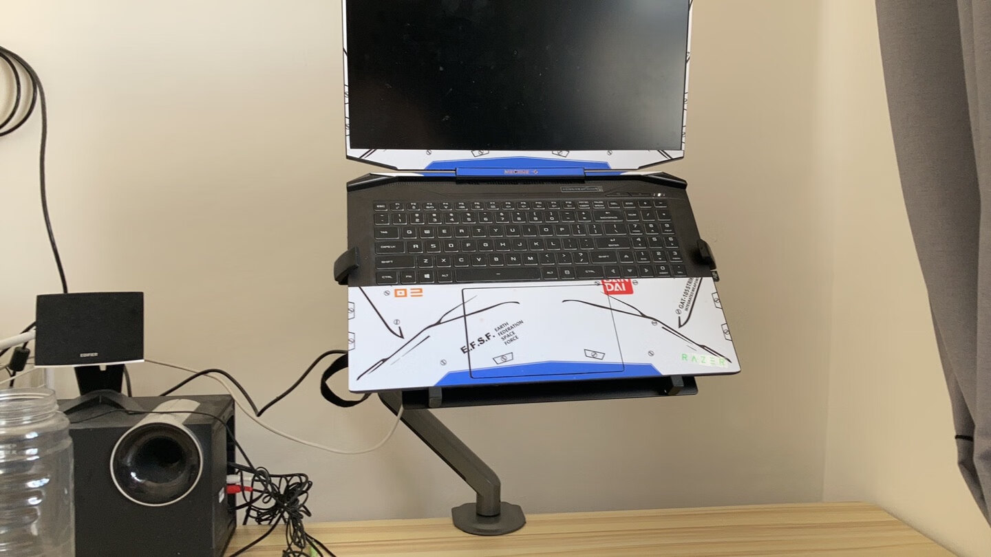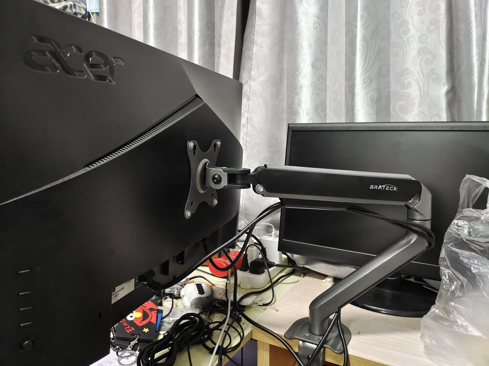 穷人,换不起带VESA孔的显示器,咋办呢?无痕钉??这个支架,阻尼感很好,颜值也高。安装方便。还来不及收拾施工现场?好评