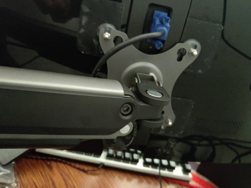 外观:我买的银色的,支臂看着挺结实的,质感也不错使用效果:接头转动非常顺滑,根据自己的显示屏重量去调整螺丝,就可以做饭非常顺滑。因为的我的显示器没有安装支架的螺丝孔,我买了螺丝贴,贴在背面效果也差不多。