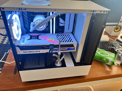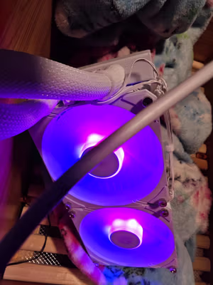 完美亮机显卡份量够重,灯效、外观也不错,待机温度在37度上下浮动,散热风扇没有声音,也没有啸叫。本来是打算直接等到50系列再换新卡,但无奈早几天显卡坏了一直用核显顶着,而且也过保了无法修理,一下变成了刚需,这下看来下次换卡要到70或者80系列再换了。