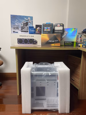 包装原封,温度压在60度以下,4K全高稳定60帧,买这个没后悔,搭配850金牌电源,省了600多。以前的3060GPU温度都是80-90度,这次剁手水冷没买错。