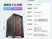 爱国者 YOGO T21机箱是一款高性价比的白色侧透机箱,支持ATX主板,整体设计简约时尚,适合打造各种风格的DIY主机。机箱内部空间宽敞,支持安装36...[详细]