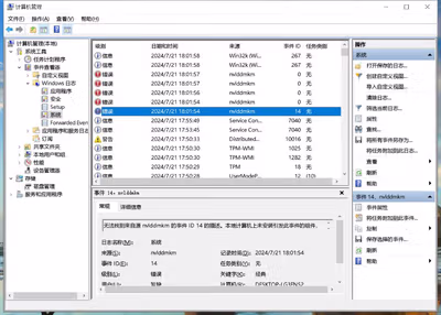 因为我对电脑相对了解,因此可以自己排除故障,首先对系统进行了重装,微软官网的win10镜像。还是蓝屏因此开始查看蓝屏日志,指向nv驱动,事件ID0-14,似乎是系统重启nv驱动失败导致的蓝屏因此使用DDU重装了三版不同的驱动1月4月552.22版7月560.70版,其中4月版没有出现蓝屏但是会出现游戏闪退情况,到这里基本可以排除是软件问题,因此不得已手动降低显卡频率,然后后没有再出现蓝屏情况,初步结论:CPU和GPU主要硬件没有问题但是主板供电缩水导致无法稳定显卡高频运作时的供电导致掉驱动。