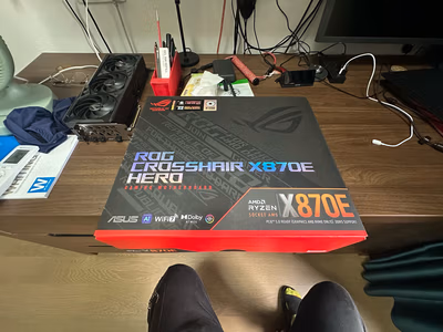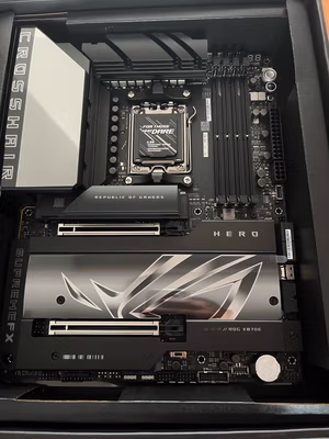 华硕ROG X870E HERO不愧是AM5平台的旗舰主板!20+2相豪华供电轻松驾驭锐龙9 9950X超频,PCIe 5.0和DDR5-6400+支持让性能彻底释放。AI智能超频2.0一键优化,散热马甲全覆盖,高负载依旧低温稳定。5个M.2插槽+万兆网卡+WiFi 7,扩展性拉满。AURA SYNC神光同步信仰拉满,BIOS界面友好超频简单。无论是极限玩家还是高端创作者,这块板子都能完美胜任,ROG信仰之选!