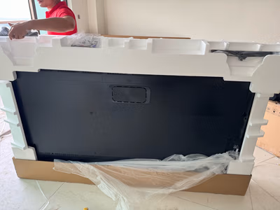 外形外观:边框很窄,85寸很大,厚度很薄,