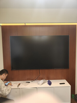 师傅送装一体的,非常方便,来了就帮直接装好调试,85寸离地55刚刚好!非常大气!
