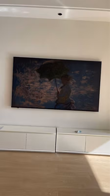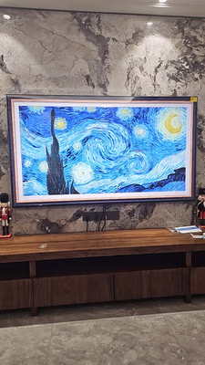 安装效果非常好,电视完美贴墙!迫不及待的测试了一下壁纸功能,艺术画框也非常完美?福利也很给力,比想象中效果还要好!
