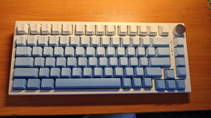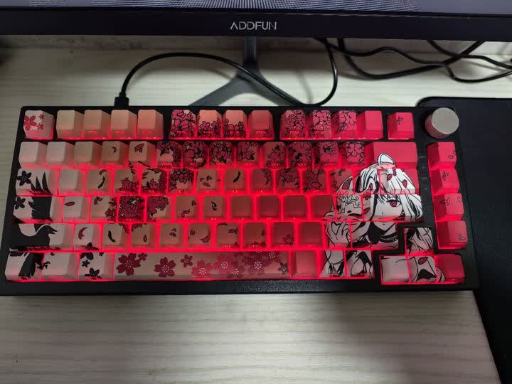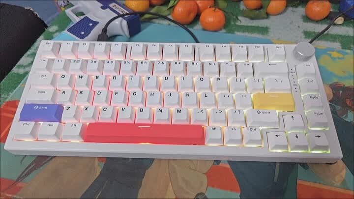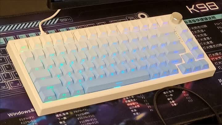 金属音量旋钮堪称点睛之笔,阻尼细腻且支持按压静音,实测盲操精准度不输高端产品。紧凑87键布局节省空间,键帽字符采用闭口双色注塑工艺,长期使用不易磨损。有线单模连接虽无无线便利,却换来了零延迟的稳定表现,对电竞玩家而言反而更具实用性。