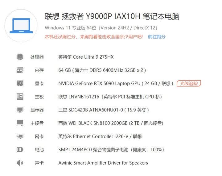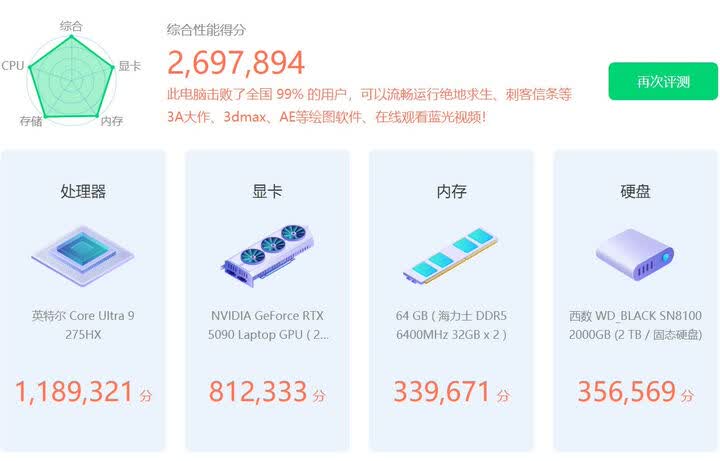 2.内存64G,硬盘2T 算是满足我的需求,上一台联想32G内存2T硬盘工作中还是比较受限,理想配置是未来人类的那个96G的配置,主要担心他的售后。