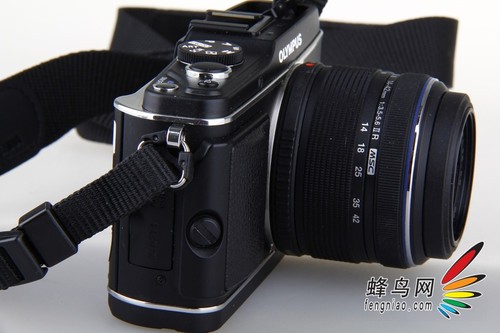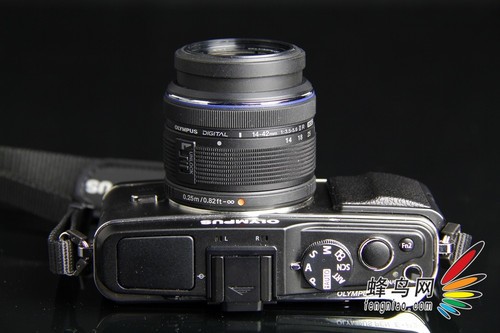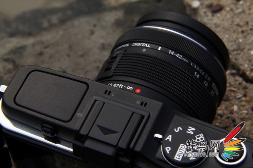 在上一代产品中,项部功能转盘是部署在顶部左侧,E-P3增加了一个内闪后,其转盘也重新设置到了机顶右侧。
