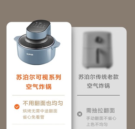 苏泊尔5L大容量空气炸锅全新升级不用翻面技术让美食加热更均匀蒸汽嫩炸锁住食材原汁原味炸烤一体设计满足多样烹饪需求无论是酥脆炸鸡还是鲜嫩蒸菜都能轻松搞定现京东活动售价169元参与9折优惠叠加政府补贴15%及以旧换新补贴3% [阅读全文]