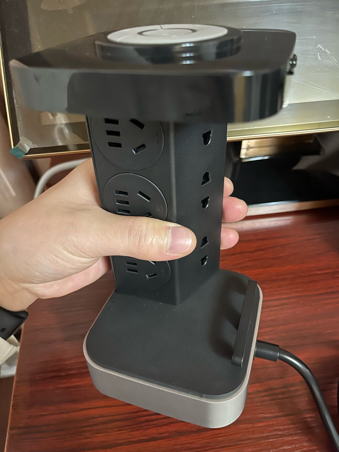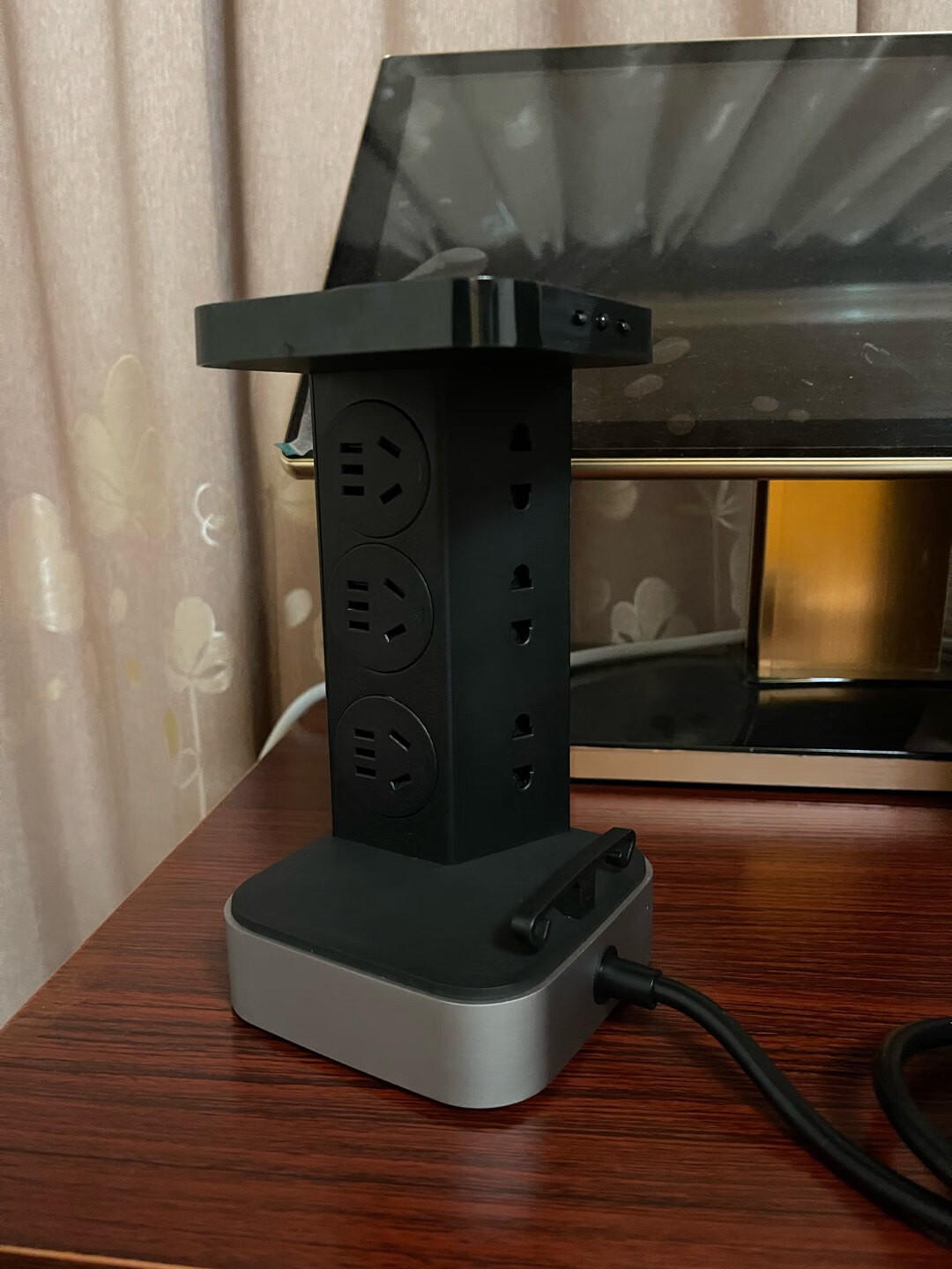 外形外观:挺好看的,摆在那里像个小音箱一样的,或者其他电子设备,总之挺好看,但也会牺牲一些内部空间。 安全性能:公牛老品牌,值得信赖,线材什么的都有分量也粗,内部我没拆过,谁没事新买的东西折腾,看过一些测评。 产品质感:我这是第三个公牛智能插座,这包装真的是高大上啊,买回来以后他们都挺开心的,以为我把jbl的万花筒买回来的,结果失望了,我说我买了一个一点也不像插座的公牛插座。 其他特色:这里我放上几张图 供需要买的朋友参考,6插位其实我都要用的,但是我用了5个,第5个还是勉强才把外壳套上的。如果你身边都是常规小插头是可以很好的放下,如果大一些 线又硬,可能会不是很方便。另外iPhone的快充头不能放进去,放了就没法盖盖子了,我是用了延长线才解决的,不然我只能用4个插位。我图中iPad的充电头是韩版的,那种更放不进去的。个人感觉这次买的飞碟插座和这个智立方 灯太亮了,下图是晚上拍的,开灯效果是真实的,但是并不是光环效果,是有3个灯的,拍出来都成一个圈了,另外关灯效果不真实,那个太亮了,在面前看到的不会那么亮,真有那种效果都能当小夜灯了,总体来说买一个用用也还行,有app可以实时看功率/电费/定时等。个人80%推荐购买该款。