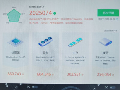| CPU型号 | Intel 酷睿i9 12900KF |