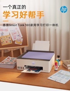 **惠普Tank593彩色喷墨打印机:** 大墨仓设计,随机墨水可打**6000页黑白/8000页彩**,单页成本极低(黑白1分/彩3.3分)。智能灌墨不脏手,支持微信远程打印,三合一功能实用。防水黑墨文字清晰,彩印鲜艳。家庭/小办公高性价比优选!(注:无线初始化需调试)。给孩子打印教辅材料、绘本等效果非常好,值得推荐!