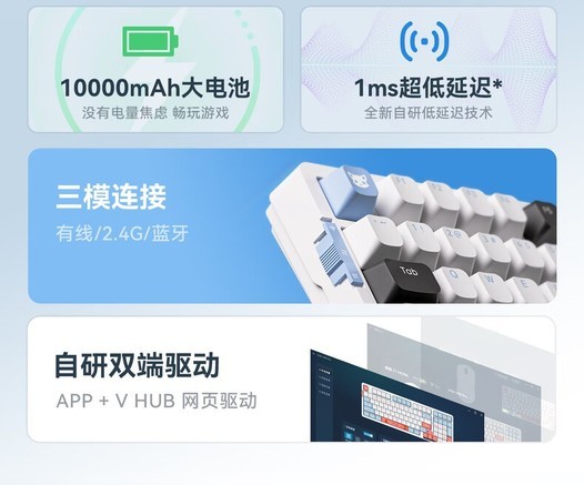 VGN V98Pro V3三模客制化键盘震撼来袭,Gasket结构搭配全键热插拔设计,带来极致顺滑敲击体验,支持蓝牙2.4G有线三模连接,低延迟稳定流畅,无论是办公、电竞还是日常使用都能轻松驾驭。奶牛轴手感轻盈清脆,配合RGB炫彩背光, [阅读全文]