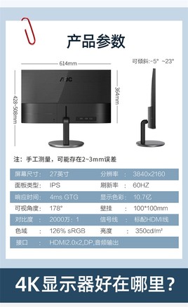 产品类型:广视角显示器,护眼显示器,4K显示器