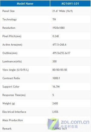 屏幕尺寸:21.6英寸