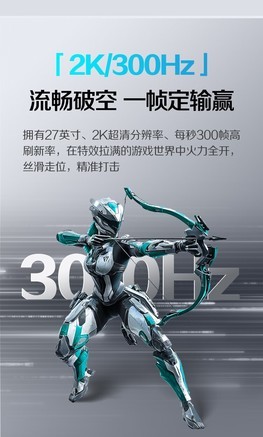 外形外观:白色外观大气典雅,没有庸俗的感觉 尺寸大小:27寸屏幕大小刚好 游戏效果:300高刷玩游戏简直如虎添翼 显色效果:2k分辨率用上以后再也回不到1K屏幕了 其他特色:很棒的一款显示屏,AOC值得信赖