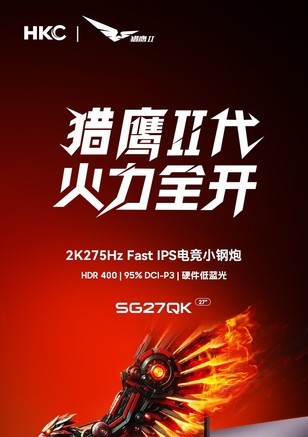 HKC G27H4D 27英寸2K高清显示器,搭载2K超清分辨率与275Hz超高刷新率,带来流畅顺滑的视觉体验,无论是游戏竞技还是日常办公都能轻松应对,支持硬件低蓝光技术,有效减少屏幕蓝光伤害,长时间使用更护眼。目前该产品参与国家补 [阅读全文]
