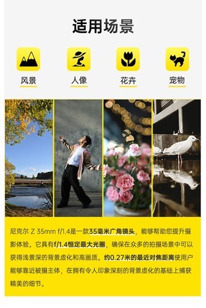 优点:尼康Z 35 1.4算是F1.4大光圈镜头,价格不到5000元,算是性价比非常好的一支镜头。35mm镜头算是街头摄影常用焦段,尼康这支镜头搭配Z系列微单机身,还是很协调的,这支镜头1.4光圈,虚化效果还是不错的,总之这个价位有这样的配置的镜头,值得推荐。
