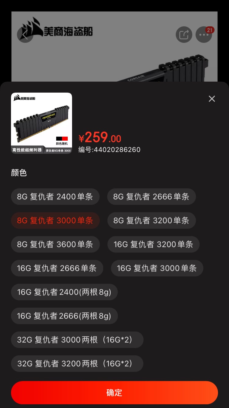 内存海盗船复仇者 32GB