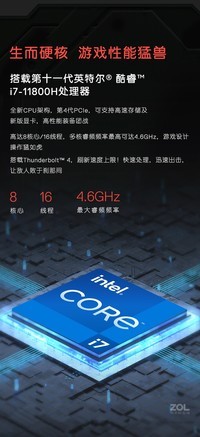 | CPU型号 | Intel 酷睿i7 11800H |