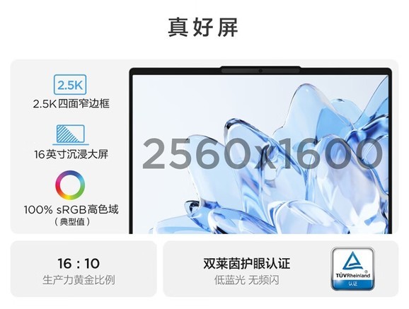 | 屏幕技术 | DC调光,莱茵TUV硬件级低蓝光认证,Eyesafe认证,AG雾面屏 |