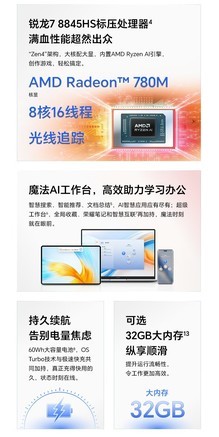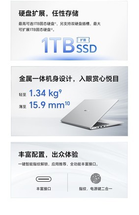 散热能力:散热能力优秀,噪音属于可以接受范围。 运行速度:配置很高,运营非常流畅, 屏幕效果:荣耀的护眼屏幕果然名不虚传。显示效果非常细腻。手机都拍不出波纹。 散热性能:日常办公时候非常安静,cpu部分温热。几乎感受不到。 外形外观:轻薄的外观,简约的造型一眼中意了,这种工业设计的美非常令人赏心悦目。 轻薄程度:非常薄,也轻便一手很轻松。最重要的充电器和原来的华为通用,出差可以省一个充电器了。 其他特色:有赠送一个电脑包和蓝牙鼠标,鼠标手感很好。