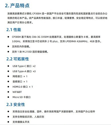 浪潮英政便携式计算机 CP300H CP300Z3