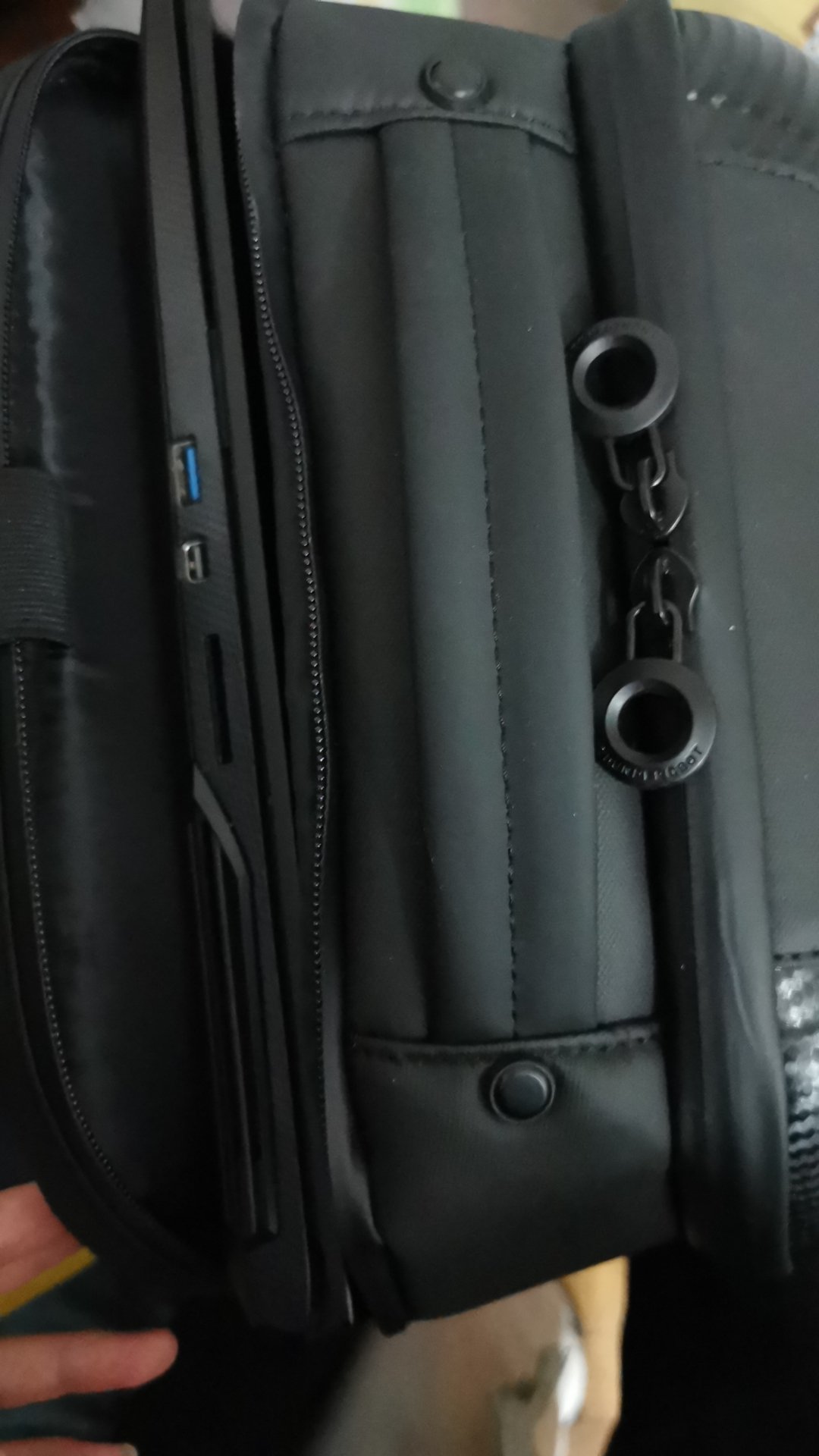 包内空间很大,材质很棒,背起来舒适,正面灯光很炫彩,接触会灭光,再接触会恢复,很棒的一款背包呢