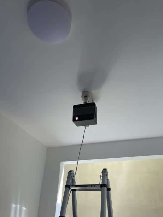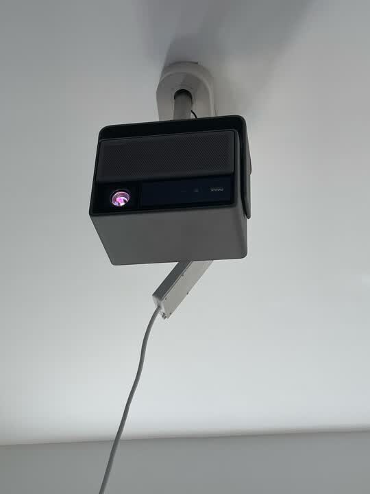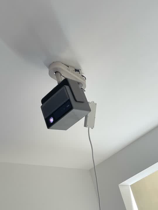 首先外观设计很精致 吊装支架配合他真的是颜值担当 投影仪有语言自带功能 按键语音就可以直接点想要看的节目 投影很适合孩子和老人 真的是很人性化 配上音响 投影自动消声 用音响取代 真的是很方便
