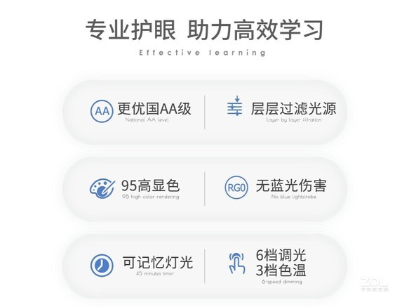 - 调光:六档调光  - 照度:国家AA级