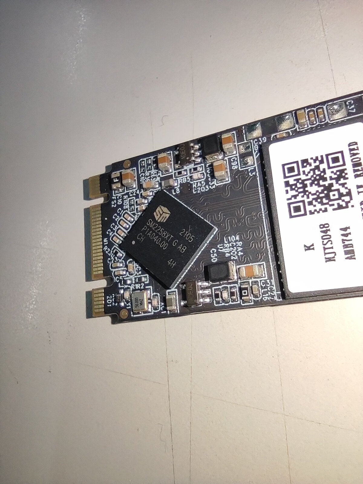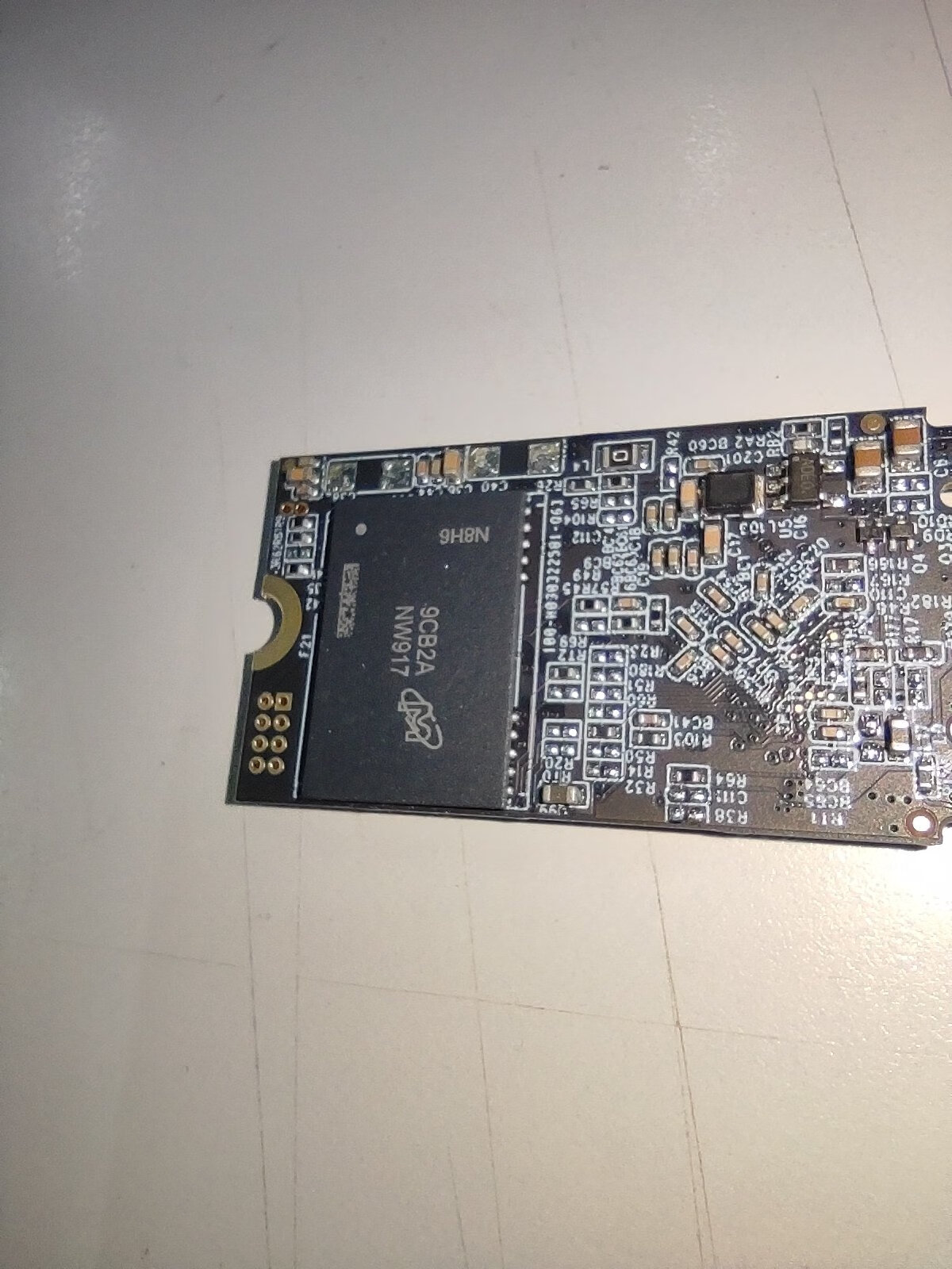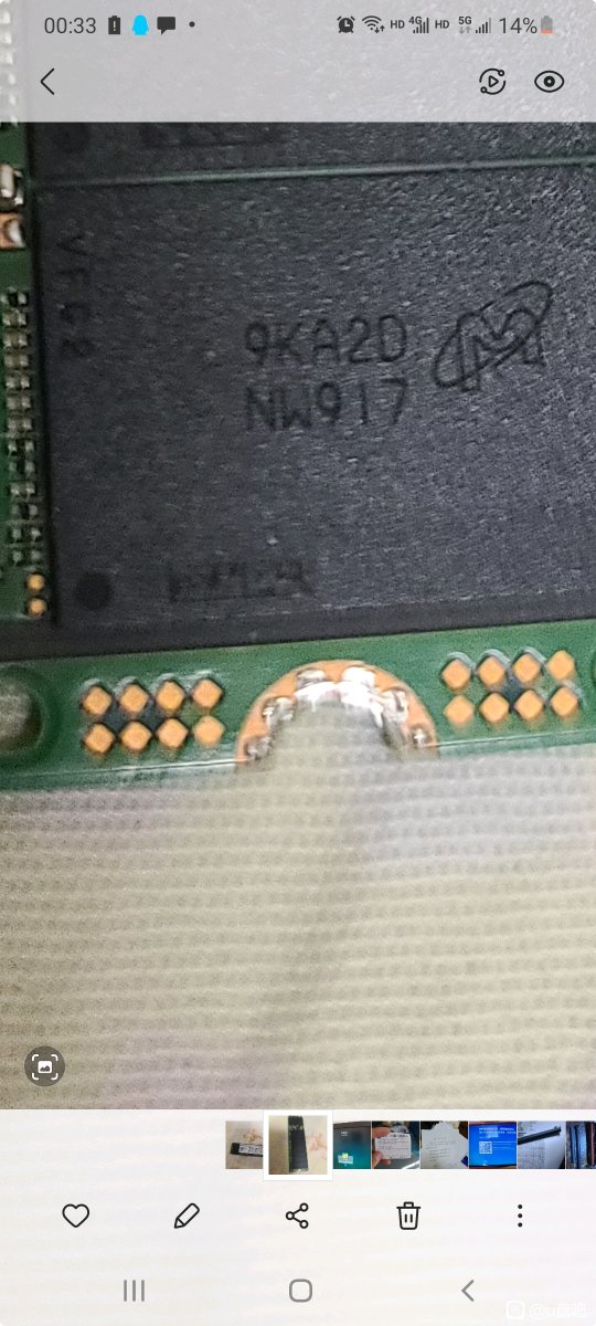 这个盘挺符合这个价位的。 主控是2258xt,正常。 颗粒如图,不太可能是镁光正片吧?字体似乎有问题,有没有弔大的老哥看看,是不是刮刮乐? 其实这个价位根本没想买到正片的,有大s的AF片都算赚到。 图三是正经镁光盘上的nw917,注意字体。 图四是4k,缓内,算及格吧。