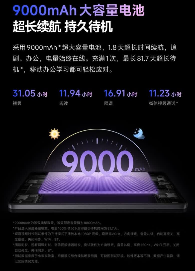 现在发现小米挺爱吹牛皮,夸大宣传的,介绍宣传能看31小时视频,新机,实际测试持续循环播放抖音视频,从满电到1%,只有10小时多一些。只有宣传的三分之一续航。安兔兔检测电池健康度只有90% 别说小字提醒,提醒文字为什么比正面宣传文字小那么多?谁正常使用不是开最大亮度?我还觉得亮度不够呢。很多人还会开几个应用一起使用。