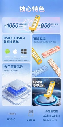 联想ThinkBook 512GB Type-C USB3.1高速U盘,专为办公商务人士打造,采用双接口设计,支持Type-C和传统USB-A接口,兼容手机与电脑,轻松实现数据互传,读取速度高达150MB/s,大幅提升文件传输效率。优质金属外壳,质感出众,小 [阅读全文]