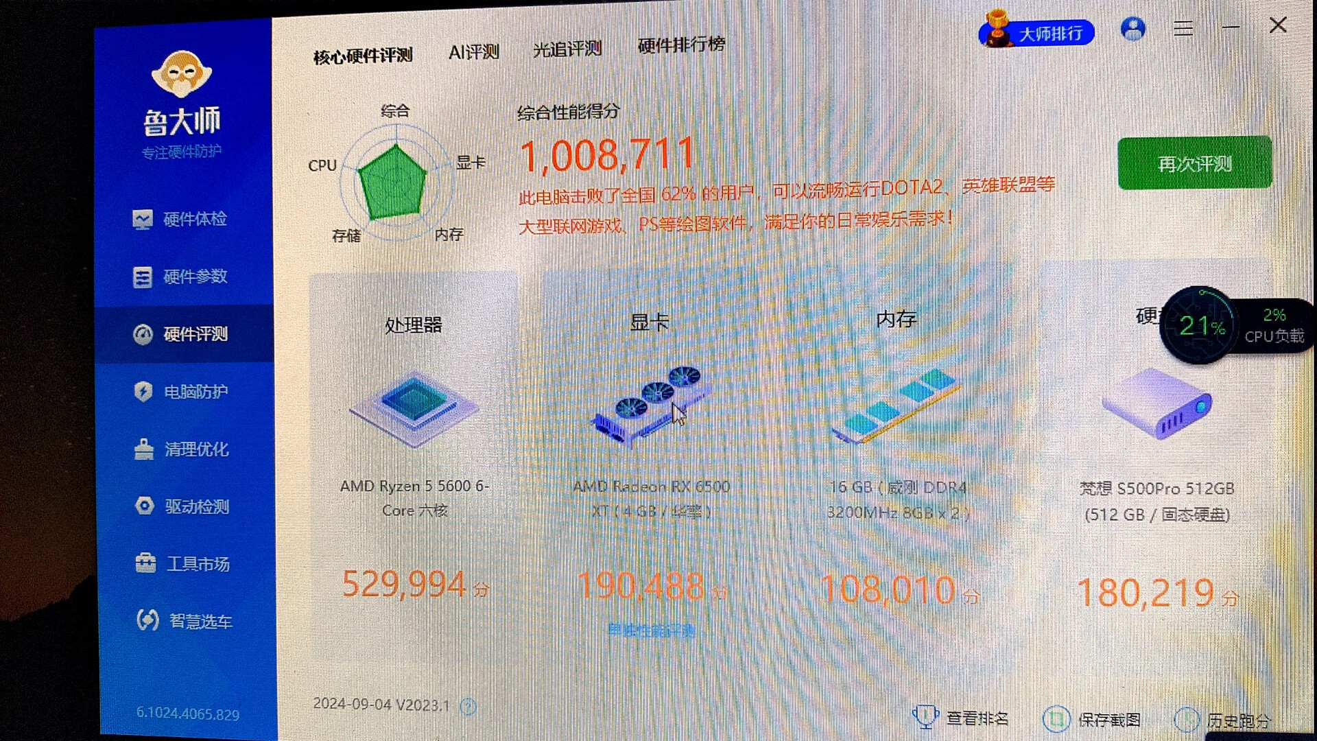 | 显卡 | 华擎Radeon RX 6500 XT Phantom Gaming D 4GB OC |