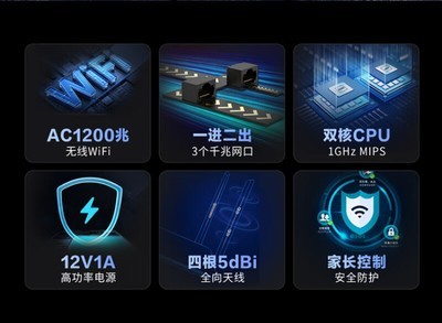 | 网络接口 | 1个10/100/1000Mbps 千兆WAN口,2个10/100/1000Mbps 千兆LAN口 |